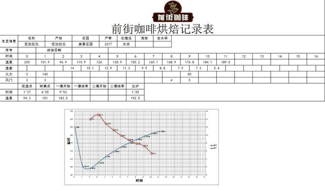 FrontStreet Coffee's roaster found that this coffee has relatively large beans with high density, so they extended the dehydration process. The heat absorption during roasting is also slower, and the Maillard reaction process is more gradual. The yellowing point occurs at 6 minutes. In the first batch, FrontStreet Coffee's roaster used a higher drop temperature, starting with 200°C bean temperature and relatively high heat, gradually increasing the heat as needed during roasting. With this approach, the coffee's dehydration time is relatively extended, with a temperature increase rate of 6-8°C every thirty seconds.