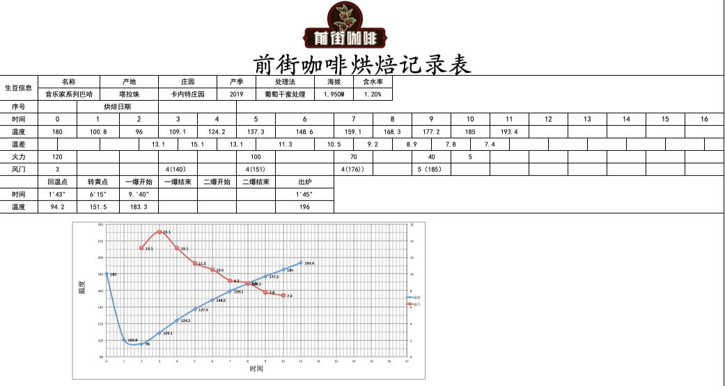 This FrontStreet Coffee Costa Rica Bahia coffee bean consists of the two most common varieties in Central and South America: Caturra and Catuai. The green beans have a fermented fruit aroma. Observing the green beans, they appear dark green, grown at around 1,950M altitude, with relatively hard bean texture. Being from the 2019 harvest season, the beans have relatively high moisture content. The roasting approach uses a gradual heat reduction and extended dehydration time along this curve. Considering that this "FrontStreet Coffee Costa Rica Musician Bahia" uses double-fermented raisin honey processing, the roast degree is designed as medium roast, mainly to highlight the bean's fermented aroma and fruit flavors while preserving the balanced and full-bodied texture typical of honey-processed beans.