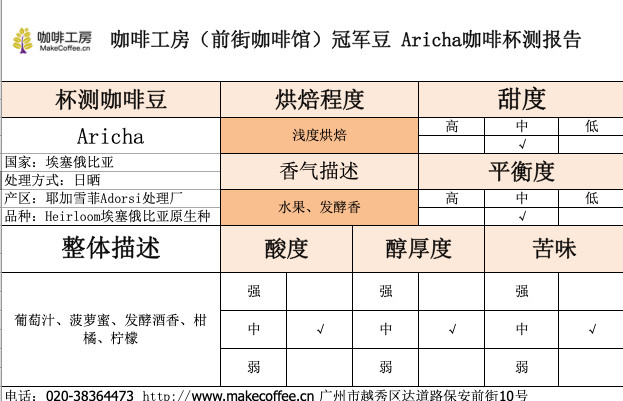 [FrontStreet Coffee Yirgacheffe Natural Aricha Coffee]: Has mature fruit aroma. Obvious fermentation flavor upon entry, green grapes. As the temperature slightly cools, there's lemon acidity, cream, and a grape juice sensation in the finish.