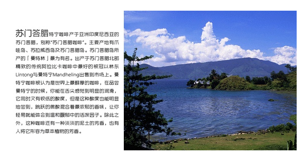 Indonesia has a total of 17,508 large and small islands, with main coffee-producing regions including Java Island, Sulawesi Island, and Sumatra Island. A large portion of the varieties are Robusta, while Mandheling, also known as "Sumatran coffee," belongs to the Arabica species (with some Timor varieties), giving most Mandheling coffee the characteristics of rich bitterness, excellent body, and a slight chocolate flavor. Therefore, as long as coffee is grown in Sumatra Island, regardless of the bean variety, it can be called "Mandheling coffee."