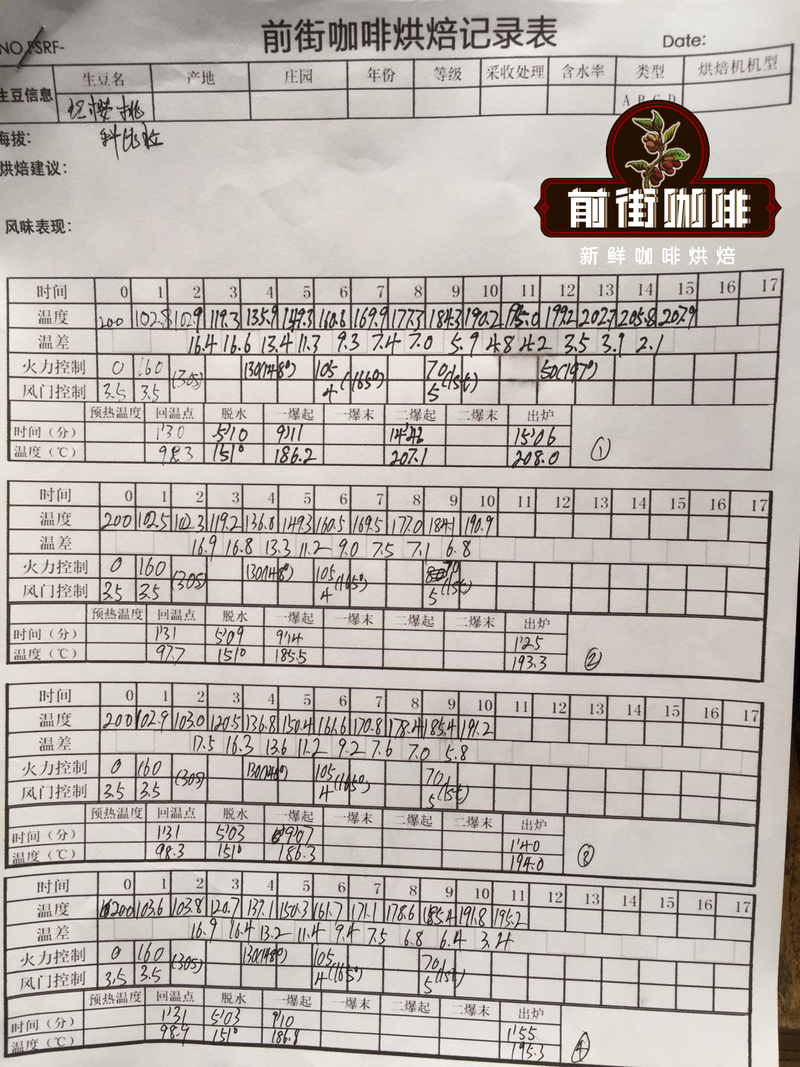 In the first roast, I used a higher dropping temperature, using 160 heat before the coffee beans dehydrated and turned yellow, ensuring sufficient heat to sustain through first crack and develop directly to second crack, confirming the development curve. In the second, third, and fourth roasts, with the same 200° entry temperature and same heat, I gradually reduced the heat during roasting as needed.