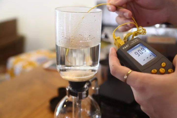 Water temperature 90-91°C, reduce heat, add coffee grounds and stir 3-5 times for thorough wetting, at 45 seconds stir gently for 5 seconds