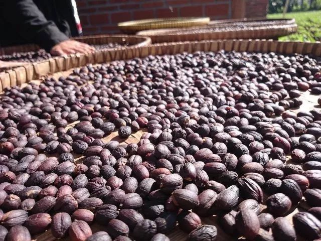 2. Next, elevated wooden frames or entire trellis structures are used for sun exposure, avoiding the risk of beans picking up impurities from the ground. During the sun exposure process, beans must be carefully monitored to ensure even drying; every three to five days, coffee workers manually remove defective and moldy beans. Therefore, by the time sun exposure is complete and beans enter depulping, the beautifully sun-dried deep red coffee cherries are already of very low defect grade.