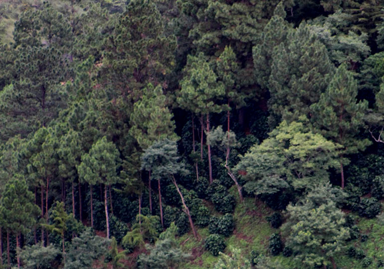 Santa Rosa spans 56 hectares, with the Rivera brothers dedicating 20 hectares to coffee cultivation, divided into four roughly equal sections. The original pine trees on the farm serve as shade trees. The local climate is quite dry and hot, but with pine forest shade, the microclimate improved significantly, making the entire estate look more like a Norwegian forest than a tropical rainforest.