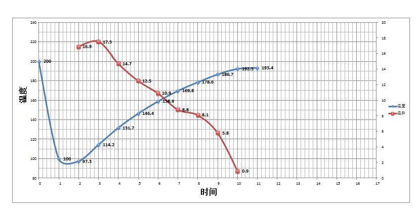 Preheat the roaster to 200°C and load beans, set damper to 3. After 1 minute of steaming, adjust heat to 160°C, keeping damper unchanged. When temperature reaches 160°C, adjust heat again down to 135°C. At 5'40", temperature reaches 154.9°C, bean surface turns yellow, grassy aroma completely disappears, dehydration complete, damper unchanged.