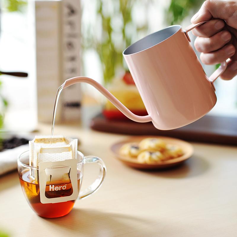 Advantages: ① Stable flow control - curved narrow spout allows even water flow extraction with 90° vertical pouring; ② Durable and sturdy - stainless steel Teflon material is scratch-resistant and easy to clean; ③ Compact size for easy carrying.