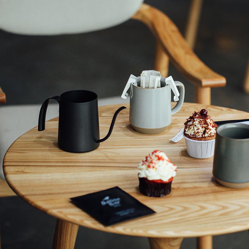 If you're too lazy to buy beans and want to drink pour-over coffee at the office, I recommend getting a hang-drip coffee set. FrontStreet Coffee's pour-over kettle works quite well, good for both hang-drip bags or coffee powder extraction, with just right water flow speed and volume control. This set includes 5+ different flavored hang-drip coffees, convenient for both home and office.