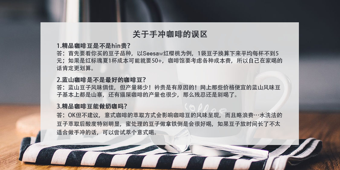 As a former barista, I'm delighted to see more and more people around me beginning to understand specialty coffee. However, I've also noticed a problem - many casual observers seem to think that specialty coffee must be expensive, and that drinking pour-over coffee at cafes or taking selfies at Starbucks are both acts of showing off... hehe~ Then there are those who buy commercial beans to brew at home, only to complain that pour-over coffee is too bitter and unpleasant... hehe~