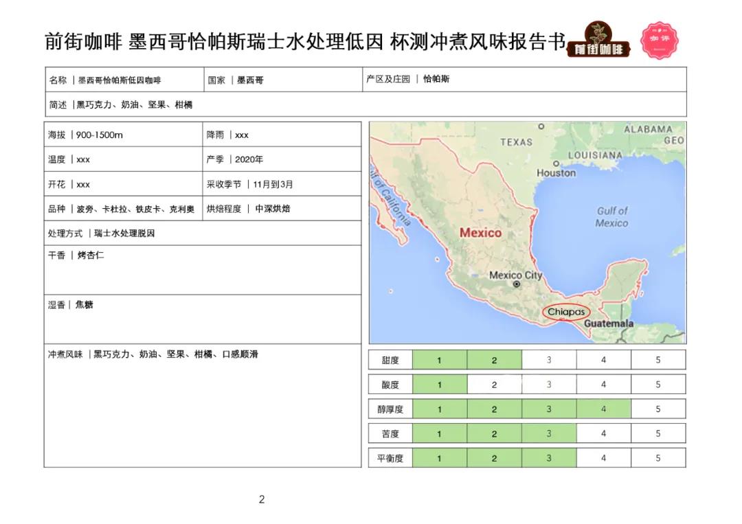 Mexico Chiapas Swiss Water Process Decaffeinated Coffee Brewing Flavor: Dark chocolate, cream, nuts, citrus, smooth texture.