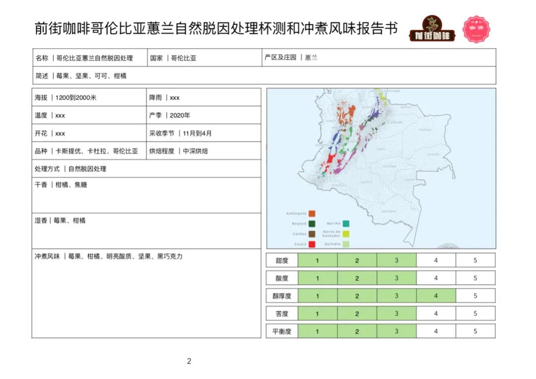 Colombia Huila Natural Decaffeinated Process Coffee Brewing Flavor: Citrus, berries, bright acidity, dark chocolate, nuts.