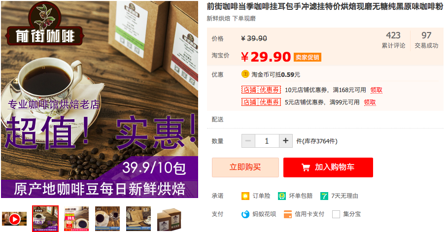 Remember to collect coupons at FrontStreet Coffee's Taobao store!
