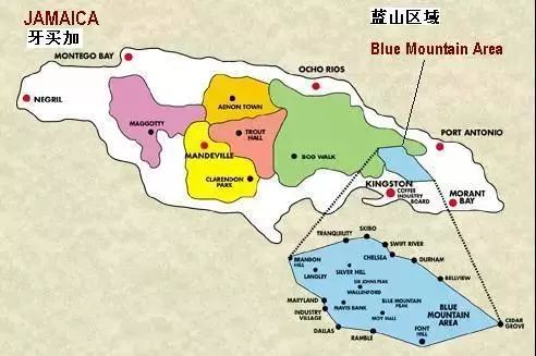 Blue Mountain Coffee is the only coffee growing region to date that uses wooden barrels for packaging raw beans, while all other coffee exports use burlap sacks. Moreover, coffee grown on the Blue Mountains is not necessarily Blue Mountain Coffee. The Jamaican certified authentic Blue Mountain Coffee growing region refers to four eastern administrative districts: St. Andrew, St. Thomas, St. Mary, and Portland, which are precisely the foothill areas that the Blue Mountains span. The altitude ranges from 1000-1700 meters, covering an area of approximately 6100 hectares. Only coffee planted in this region and meeting the 1000-1700 meter altitude requirement can be considered authentic Blue Mountain.