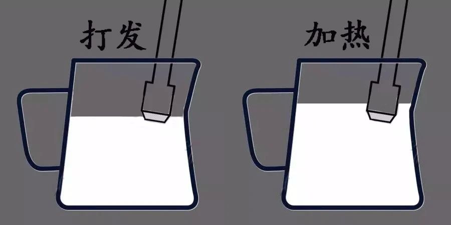 At this point, you need to fully bury the steam holes, only heating without further frothing. Don't bury the steam holes at the very bottom - it's recommended to keep them in the foam layer, which helps with texturing (breaking down coarse foam into fine foam). When should you stop? This depends on your milk temperature, generally controlled between 55-65°C. Too high a temperature will cause protein denaturation (generally, protein denaturation in food occurs at around 60°C).