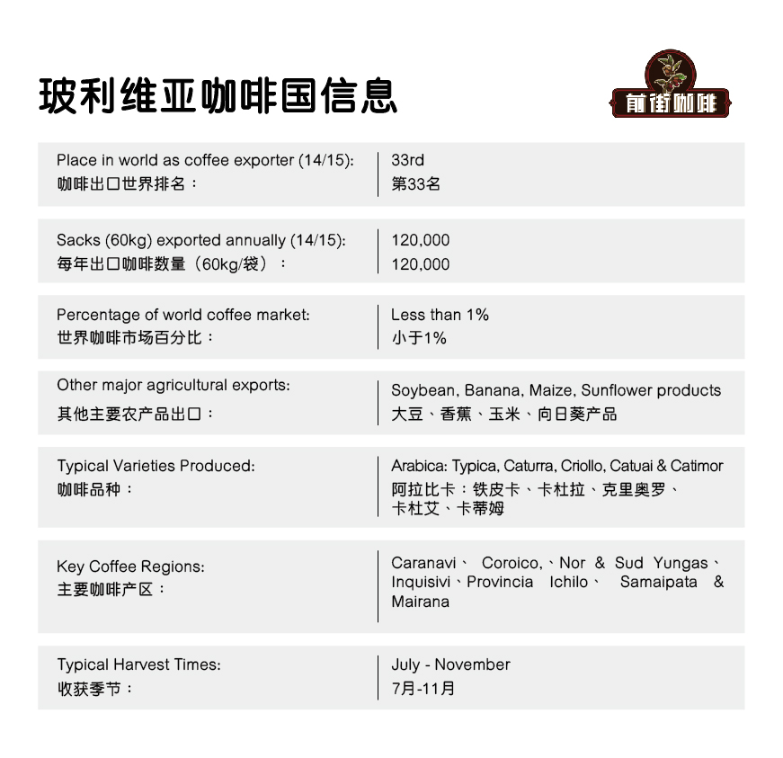 Bolivia's most famous growing region is La Paz, including Caranavi, Yungas, Inquisivi, and other areas.