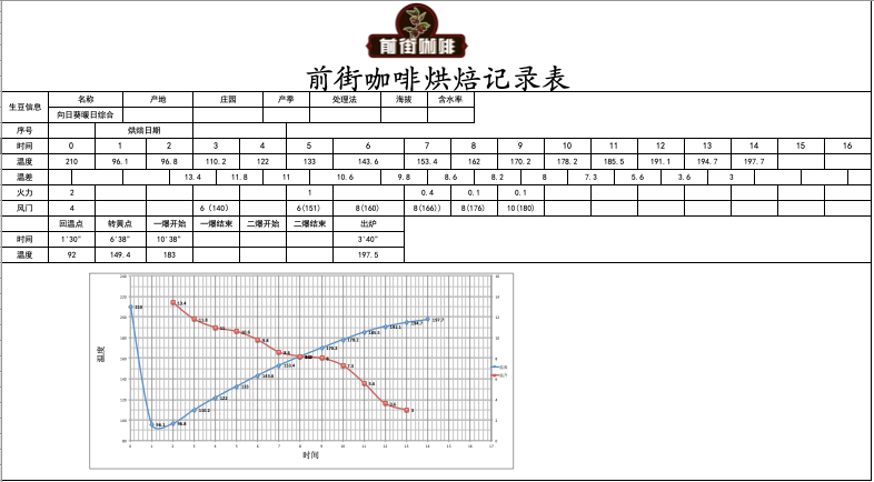 At 9'30", ugly wrinkles and black spots appear on the bean surface, and the obvious toast aroma transforms into coffee aroma, which can be defined as the prelude to first crack. At this time, listen carefully for the sound of first crack. At 10'38", first crack begins. After first crack, develop for 3'40" and discharge at 197.5°C.