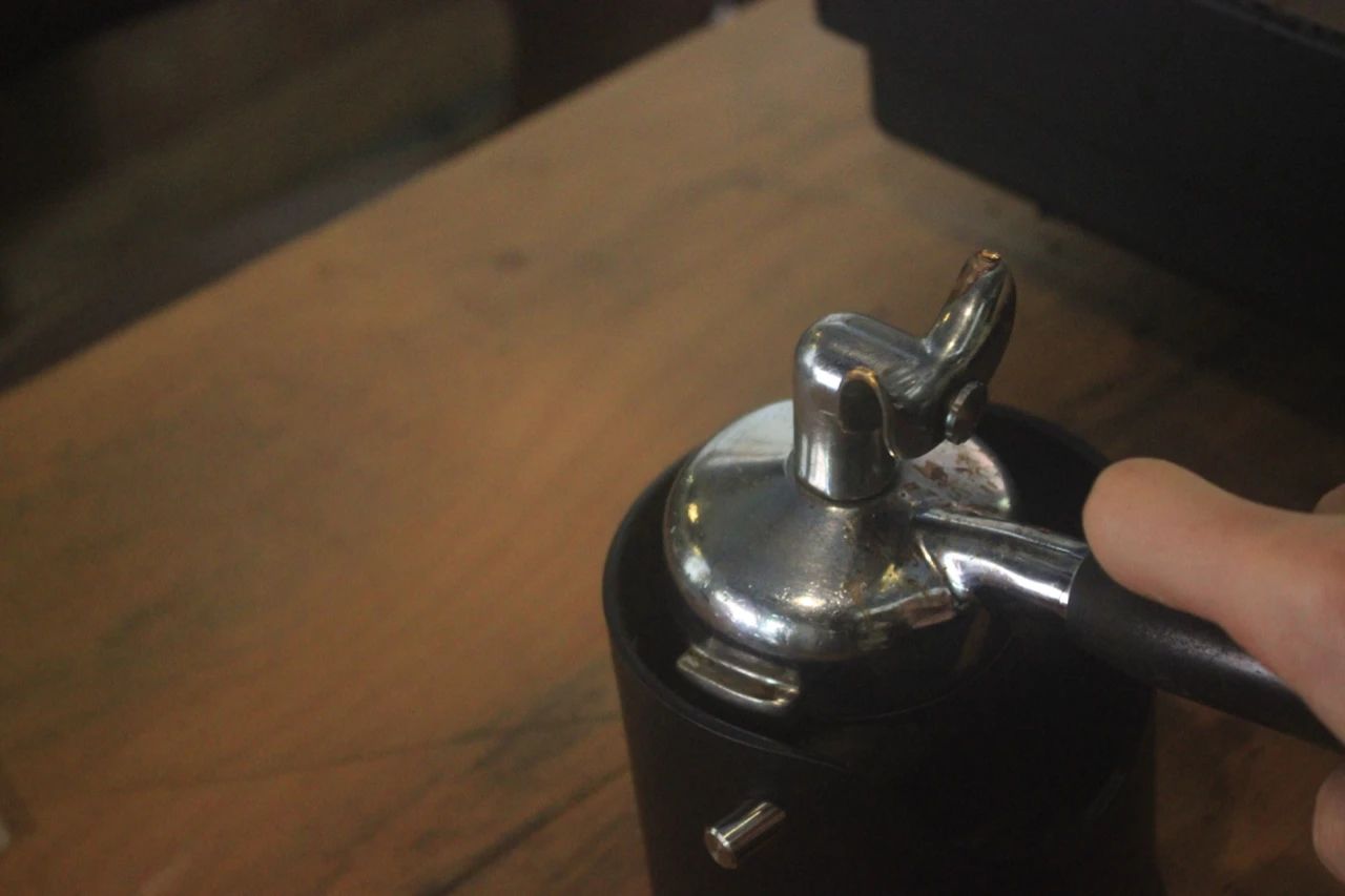 Step 1: Dosing. Before dosing the coffee powder, you need to place the portafilter on an electronic scale and zero it, then dose the coffee powder and place it on the scale to ensure consistent coffee powder weight each time. FrontStreet Coffee uses 20 grams of coffee powder.