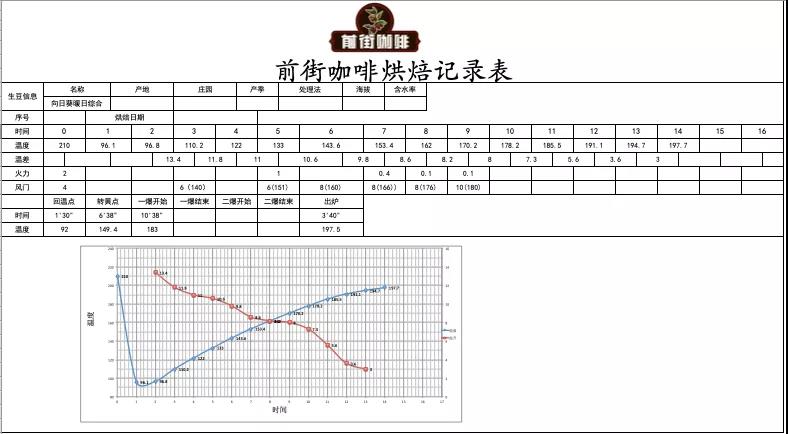 Heat the drum to 210°C to load beans, air damper set to 4, heat at 200, return temperature at 1'30", 92°C; when drum temperature reaches 140°C, open air damper to 6; at this point, the bean surface turns yellow, grassy aroma completely disappears, entering the dehydration stage. When drum temperature reaches 180°C, adjust heat to 10, air damper to maximum 10.