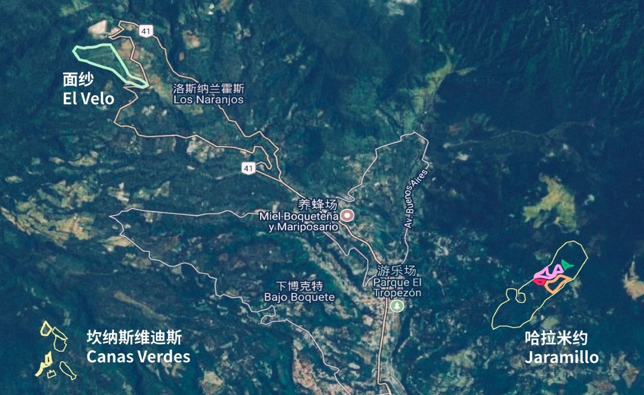 La Esmeralda is located in Panama's Boquete region, which is an important coffee-growing area in Panama. Many well-known coffee estates come from this region, such as Elida Estate and Kotowa Estate. La Esmeralda's division of Geisha plots is extremely refined, with mainly three plots: Jaramillo, Cañas Verdes, and El Velo. Each plot is further divided into smaller sub-plots.