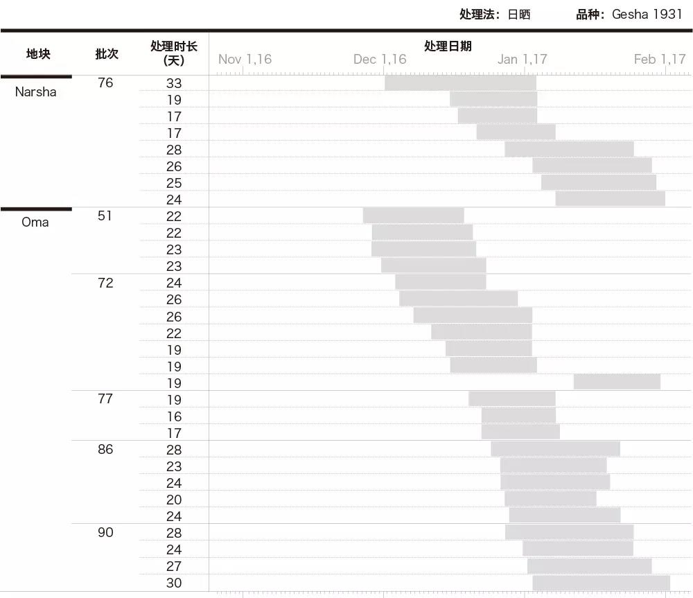 -Processing time for beans from different plots at Gesha Village in 2017