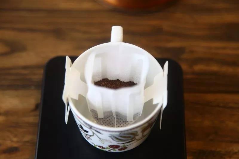 Let me emphasize here—drip bags also require a proper coffee-to-water ratio. For example, one 10g drip bag with 150ml water. Try to use a shallower cup, for instance: