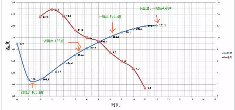 After beans enter the drum, they immediately absorb heat, causing the drum temperature to drop sharply, then at some point, the temperature rises again. This equilibrium point is the return temperature point.