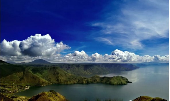 Lake Toba is a lake in the Barisan mountain range of north-central Sumatra. It is 100 kilometers long, 30 kilometers wide, and reaches a maximum depth of 505 meters. After excluding Samosir Island, which is about 50 kilometers long and 15 kilometers wide in the center of the lake, the area covers approximately 1,140 square kilometers. It is also the world's largest volcanic lake, formed by a massive eruption of the Toba volcano 70,000-75,000 years ago that created today's Lake Toba.