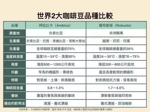 Arabica has lower caffeine content, approximately 0.9% to 1.2%; it contains 60% more fat than Robusta coffee; and its sugar content is twice as high. Therefore, Arabica tastes sweeter and softer, with a plum-like acidity. Moreover, Arabica has lower chlorogenic acid content, approximately 5.5% to 8%. Besides being an antioxidant, chlorogenic acid is also an important component for resisting pests, so Arabica is more susceptible to pest damage and climate effects. It is generally grown at higher altitudes, producing fewer fruits and growing more slowly.