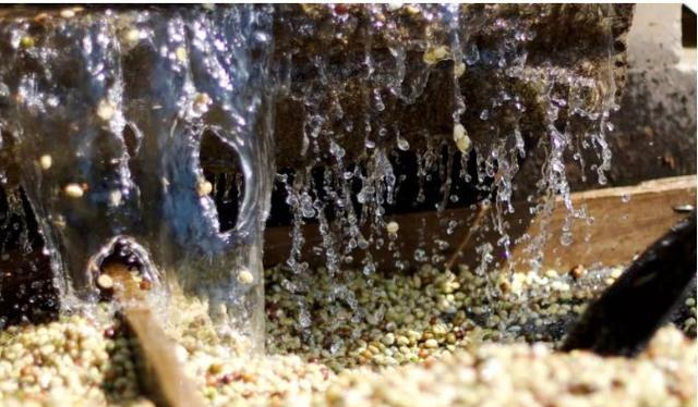 After fermentation and degumming, coffee cherries in the pool are added with an appropriate amount of water for cleaning treatment. During the cleaning process, the pectin decomposition products on the surface of coffee beans are removed by stirring. After cleaning, only the coffee parchment, silver skin, and green beans remain.
