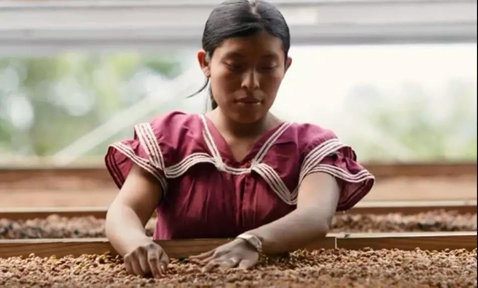 Coffee cherries are hand-sorted before and after being placed on raised beds. Staff must remove any underripe cherries and look for any with coffee berry borer (broca) holes.