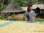 Traveling to Wild River and Dunatina Valley requires going through Goroka, featuring steep mountain terrain but lush and beautiful scenery. Coffee farmers in the mountainous areas, especially members of community alliances, have learned to manually harvest ripe cherries, use water to screen unripe fruits and debris in the first stage, then use small depulpers to remove skin and pulp, followed by about 36 hours of fermentation, after which they are washed and sun-dried on trellises.