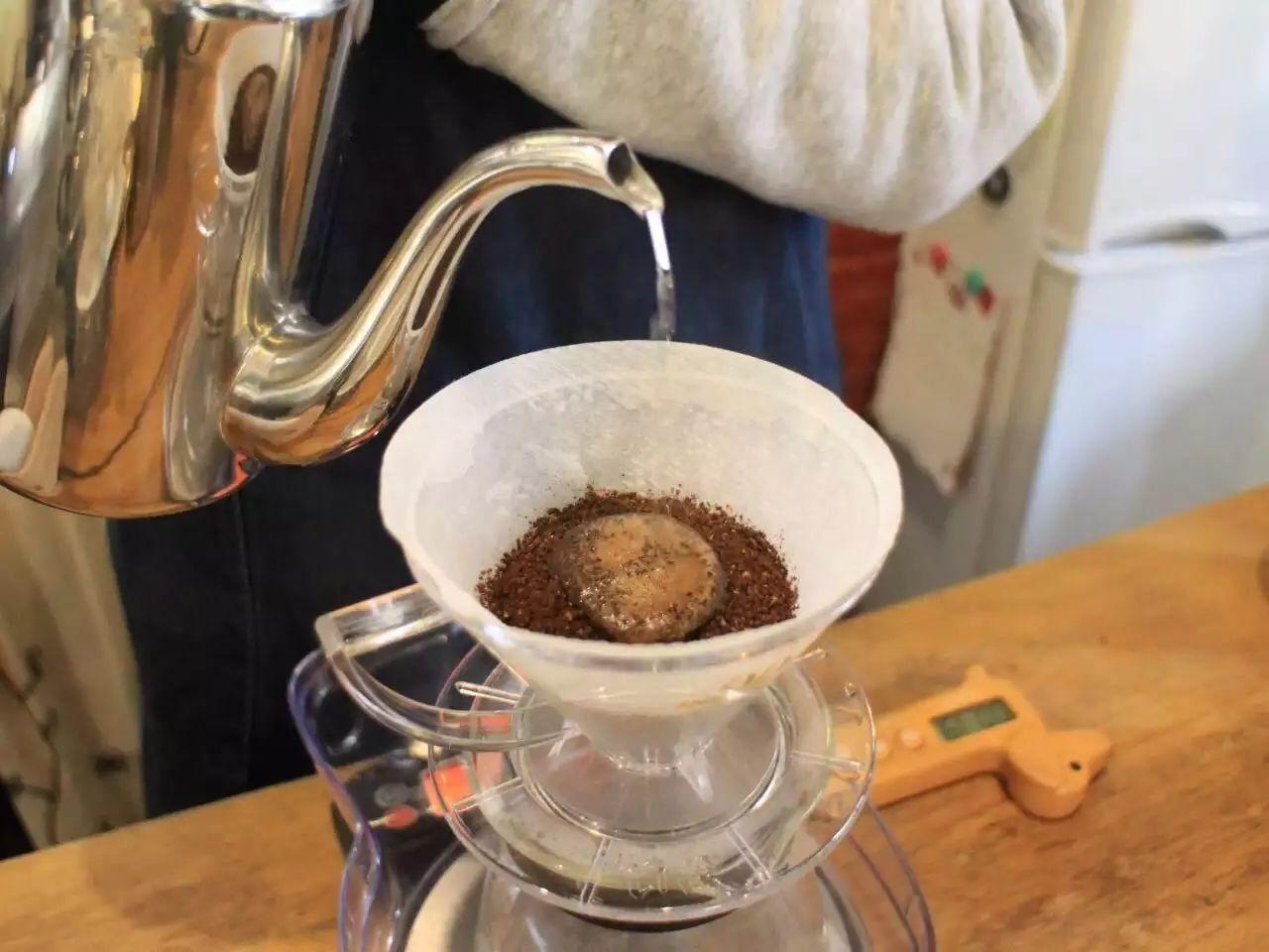 What does it mean to make a small hole in the center of the coffee bed before pouring water for blooming? The purpose is actually quite simple: because there's more coffee powder in the center, this is done to concentrate the water flow and distribute it evenly. Of course, this isn't absolutely necessary - using the impact force of the water flow during pouring can also achieve this purpose.