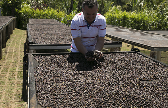 Among the coffees processed at Las Lajas Estate, the estate owners classify honey-processed and natural-processed coffees into various different grades based on flavor profiles. For honey processing, most Costa Rican coffee farmers control the amount of retained pulp using the depulpers at washing stations. However, Las Lajas Estate decided to adopt another approach—retaining 100% of the pulp but controlling the drying time and turning frequency on African raised beds to present different coffee flavor characteristics. In honey processing, the estate divides coffee into yellow honey, red honey, and black honey.