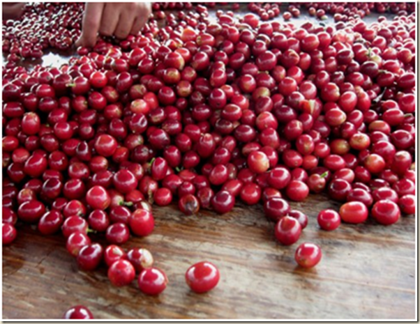 (↑ Selecting coffee fruits) (↑ Outdoor sun drying)