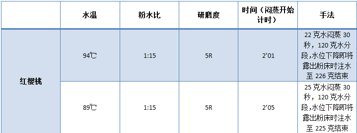 The results showed that the [Red Cherry] extracted with 89-degree water had distinct strawberry and berry flavors upon entry, with relatively clean and uplifting aroma; while the [Red Cherry] extracted with 94-degree water, although carrying rich fermented wine aroma, had bitterness in the finish, and a noticeable tea sensation after cooling.