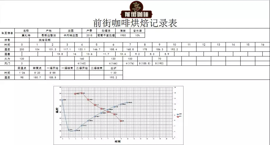 FrontStreet Coffee uses Costa Rica Mozart as an example, roasted with a Yangjia 800N semi-direct flame roaster (roasting amount 500g)