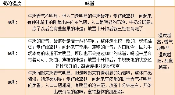 If you don't want the milk to overpower the coffee flavor, you can choose milk foam around 60°C, as at this temperature, the milk foam is balanced in both taste and aroma, making it less likely to steal the show from the coffee. If you want a latte with prominent sweetness, you can control the milk foam temperature to around 50°C. At this temperature, the milk foam has distinct sweetness and won't be easily overpowered by the coffee flavor when made into milk coffee!