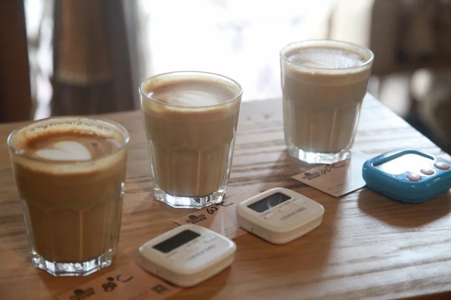 Considering the three temperatures, 60°C appears most ideal. FrontStreet Coffee then tested what happens when making milk coffee with milk foam at 50°C, 60°C, and 70°C. Since the temperature differences aren't too large, FrontStreet Coffee chose to make cappuccinos to better observe the foam dissipation rate.