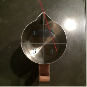 When preparing to pour the pattern, you must ensure the cup is level. How to hold the cup steady with one hand while increasing the steel pitcher tilt to 90 degrees with the other hand - this requires continuous practice to develop the feel.