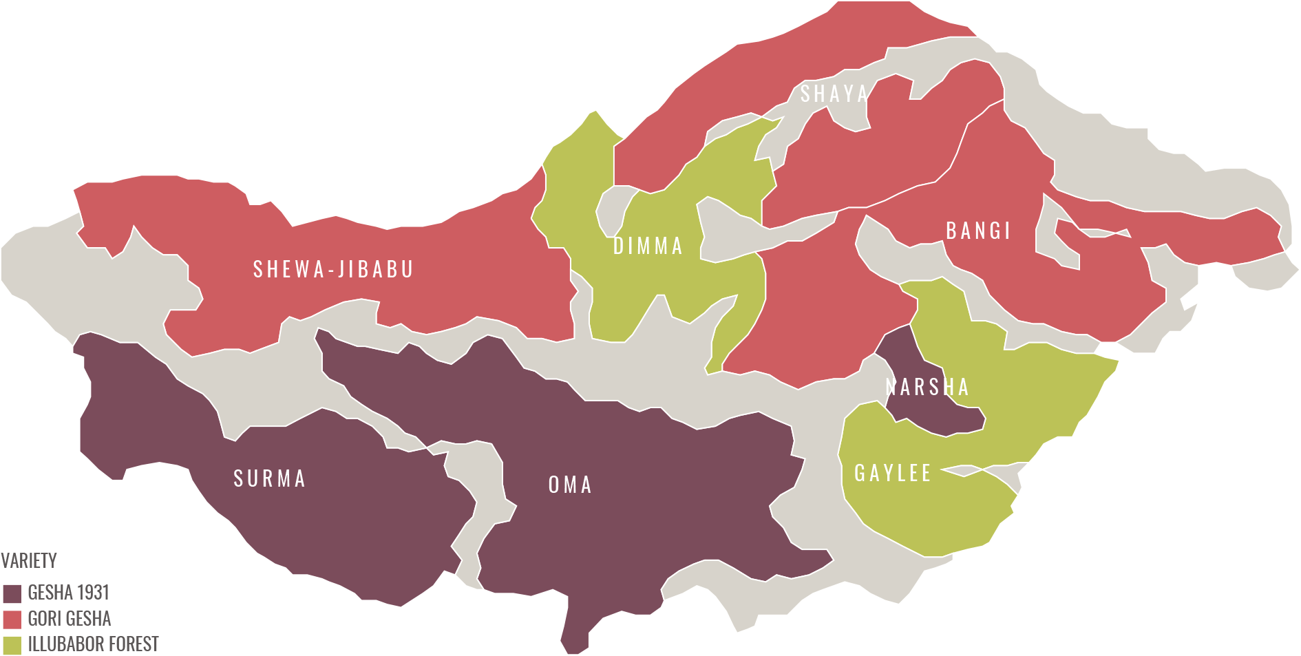 This variety replicates the genetic diversity found within the Gori Gesha coffee forest.