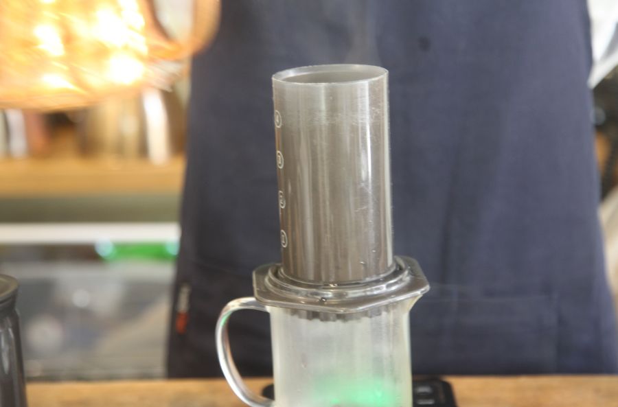 Unlike the inverted method, which involves inverting the device first for steeping and extraction before pressing out, the standard pressing method involves placing the AeroPress directly on the server for brewing and steeping, then using the plunger to press out the coffee liquid.
