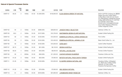 Therefore, the competition featured many coffees processed with special methods such as lactic acid fermentation, carbon dioxide maceration, and yeast treatment. It became difficult to generalize this group with the term "natural." From a perspective of keeping up with the times, the competition decided to classify all coffees processed with non-traditional washed methods into the "Processed" category. For example, this year's new bid king – lot number GNEP-01, Elida Geisha Green Tip Natural – explained in detail that the processing method used the NATURAL-ASD (Anaerobic Slow-Dried) technique, which was just mastered this year, ultimately creating a record high score of 95.25 points in the BOP competition. In summary, the 2019 BOP was divided into five categories: Geisha Processed, Geisha Washed, Traditional Varieties Processed, Traditional Varieties Washed, and Pacamara.