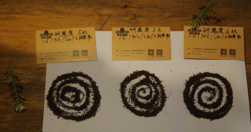 Through three different grind sizes, it's clearly evident that [BG-5M] (China standard 20-mesh sieve pass rate 64%) extracted in 1'37". Because its ground coffee is relatively finer, the surface area of the coffee particles increases, and the larger the contact area with water, the higher the corresponding extraction rate. Therefore, FrontStreet Coffee shortened its extraction time to avoid over-extraction of the coffee.