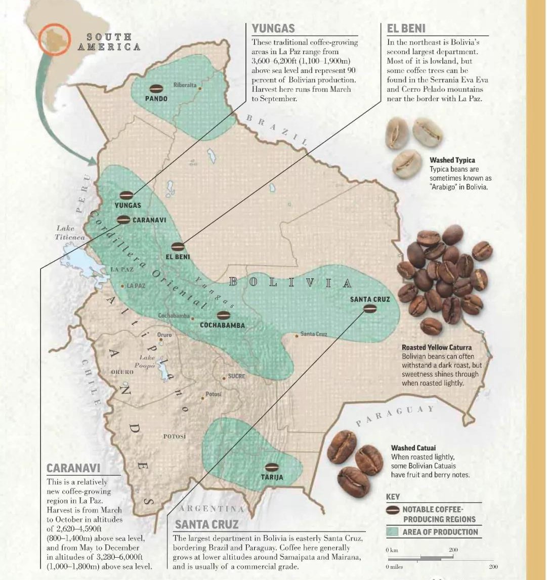 In addition to Yungas, coffee is also grown in Santa Cruz and Beni. Santa Cruz is located in the easternmost part of Bolivia, but due to insufficient altitude, high-quality coffee is rare, with cultivation accounting for about 3% of the country's total.