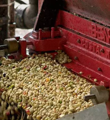 The harvested cherries are processed with a depulper to separate most of the fruit pulp from the coffee beans, then the parchment beans are placed in a clean water tank and soaked in water for fermentation to completely remove the remaining fruit pulp layer.