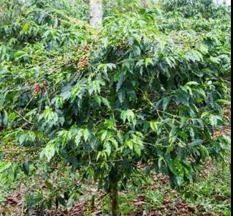 The King Bourbon coffee tree is relatively tall, with wide spacing between branches, larger leaves, and bronze-colored young leaf tips.