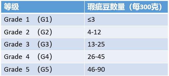 The variation in Ethiopian coffee bean sizes also stems from their coffee grading system. Before the establishment of the Ethiopia Commodity Exchange (ECX), Ethiopian coffee export grades were determined by the CLU (Cupping and Liquoring Unit) under the Ministry of Agriculture. The grading was primarily based on the number of defective beans in 300g samples. The grading standards are shown in the table below.