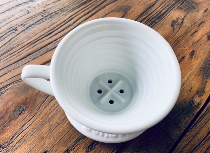 Dripper Design: Conical flat-bottom, ring-pattern texture, four holes