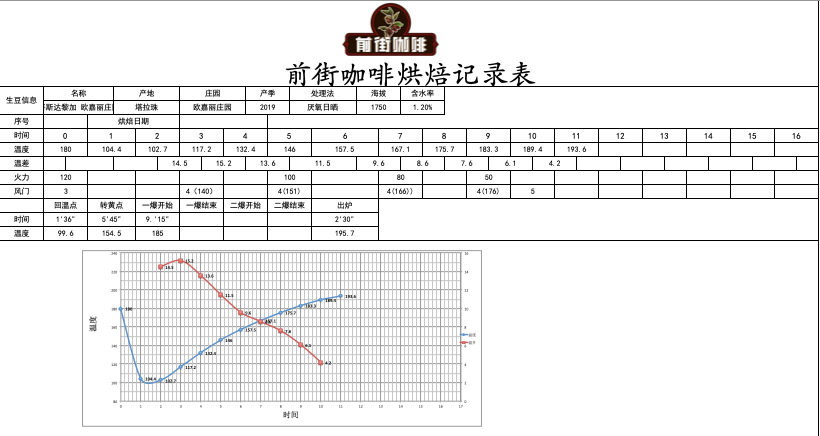 Preheat the roaster to 180°C, set damper to 3, heat to 120, return temperature at 1'36", 99.6°C; when the roaster temperature reaches 140°C, open the damper to 4; at this point, the bean surface turns yellow, grassy aroma completely disappears, entering the dehydration stage. When the roaster temperature reaches 166°C, adjust the heat to 80°C, keeping the damper unchanged;