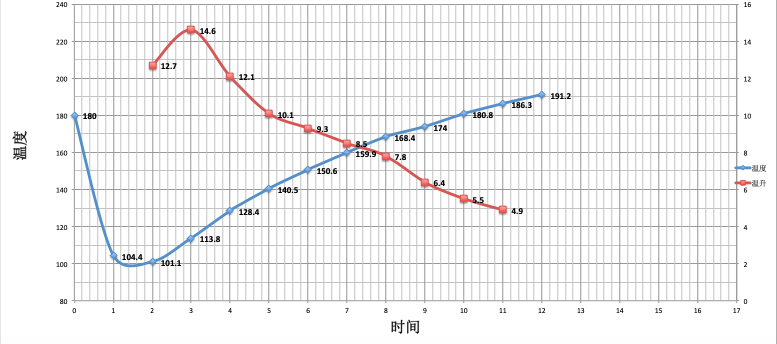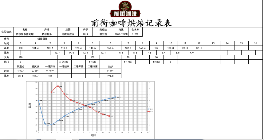 Preheat the roaster to 180°C, set heat to 120, and open the airflow valve to 3. The temperature returns to 140°C at 1'36", at which point the airflow valve is opened to 4 while keeping the heat unchanged. When the temperature reaches 151°C, the bean surface turns yellow and the grassy smell completely disappears, entering the dehydration stage. When the temperature reaches 176°C, adjust the heat to 80 while keeping the airflow unchanged.