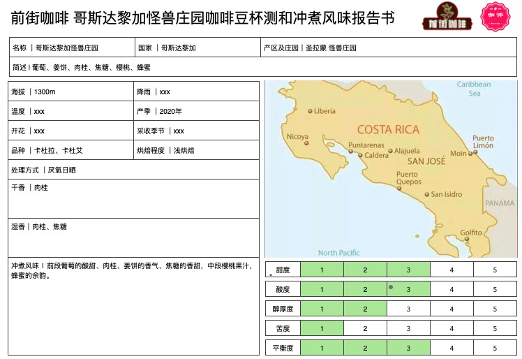 Monster Manor Coffee Bean Brewing Flavor: Initial notes of grape's sweet and sourness, cinnamon and gingerbread aromas, caramel sweetness, mid-palate cherry juice, honey-like aftertaste.